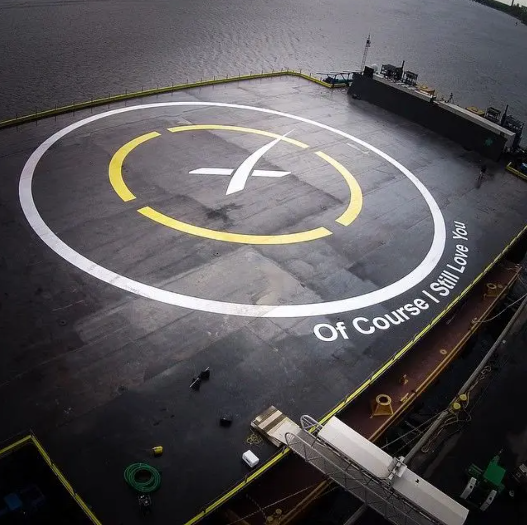 可重复发射系统:通过改造驳船,使其变成无人驾驶着陆台,能够配合火箭精准着陆。让人印象最深地莫过于位于大西洋的一个自主无人船,它有个浪漫的名字“of course I still love you”。除了驳船,SpaceX还在改造钻井平台,试图将它们建成浮动发射平台,为发射星舰做准备。