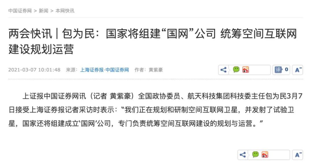 倒是有传言称一家中国企业计划发射超过12000颗卫星,用以服务全球宽带市场。并且这家公司已经向国际电信公司提交了频段申请。结合前段时间的两会快讯,这一消息大概率是真的。